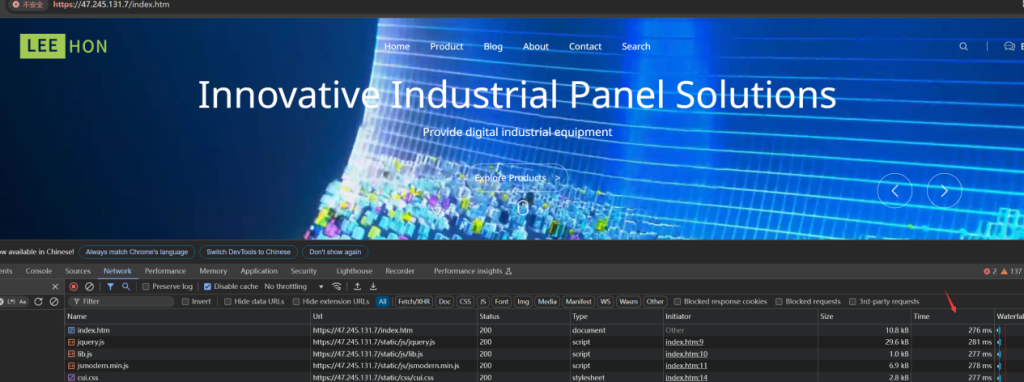 奇怪的是 就算换成静态文件htm 一样慢 1.7秒